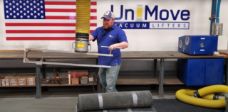 Suction Pads: When the roll’s diameter is sufficient so that pads can fit on them, this is our most typical solution. The pads can either be curved to fit the surface area of the roll, or multiple pads can be used and spaced out to create enough suction for lift.